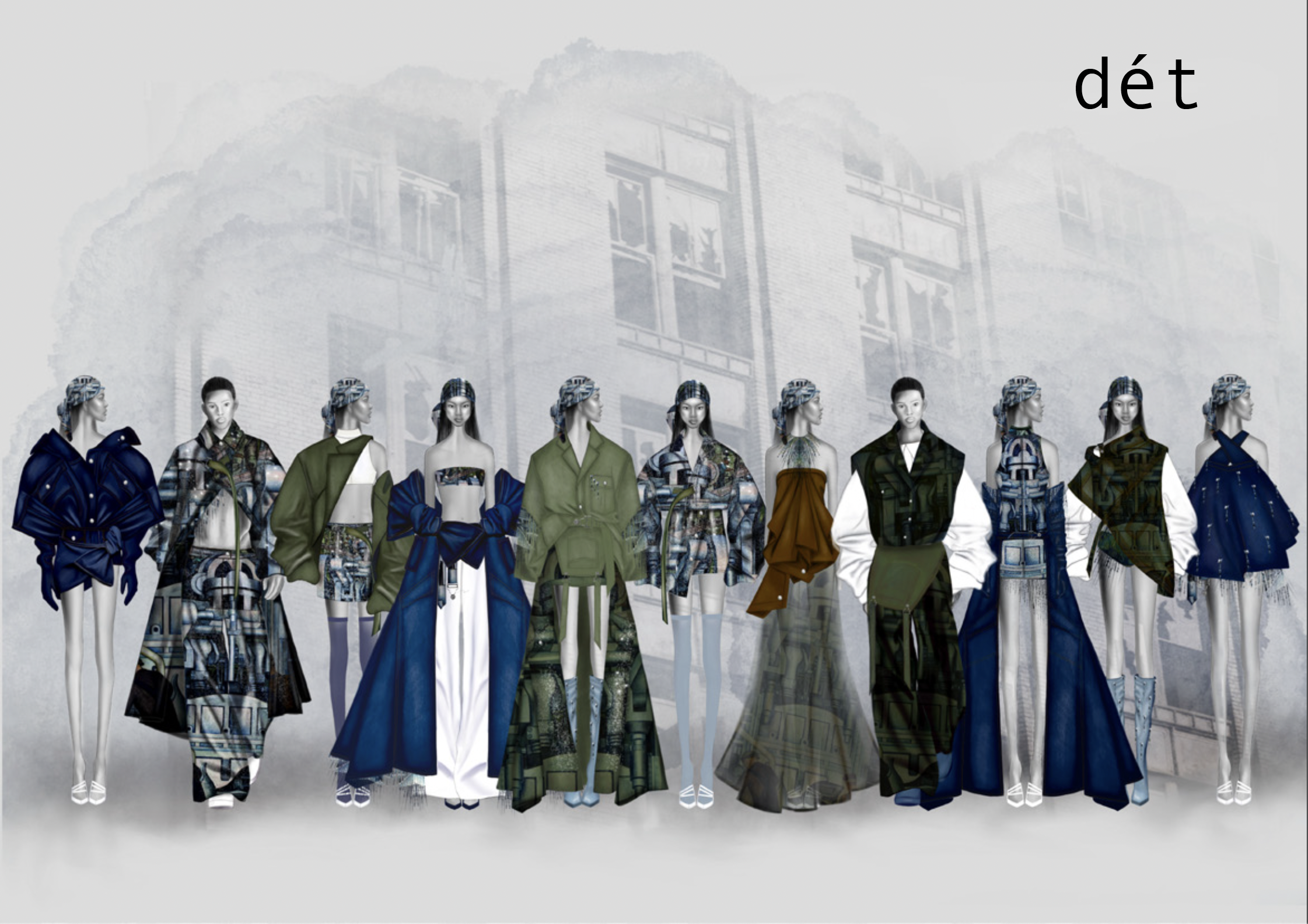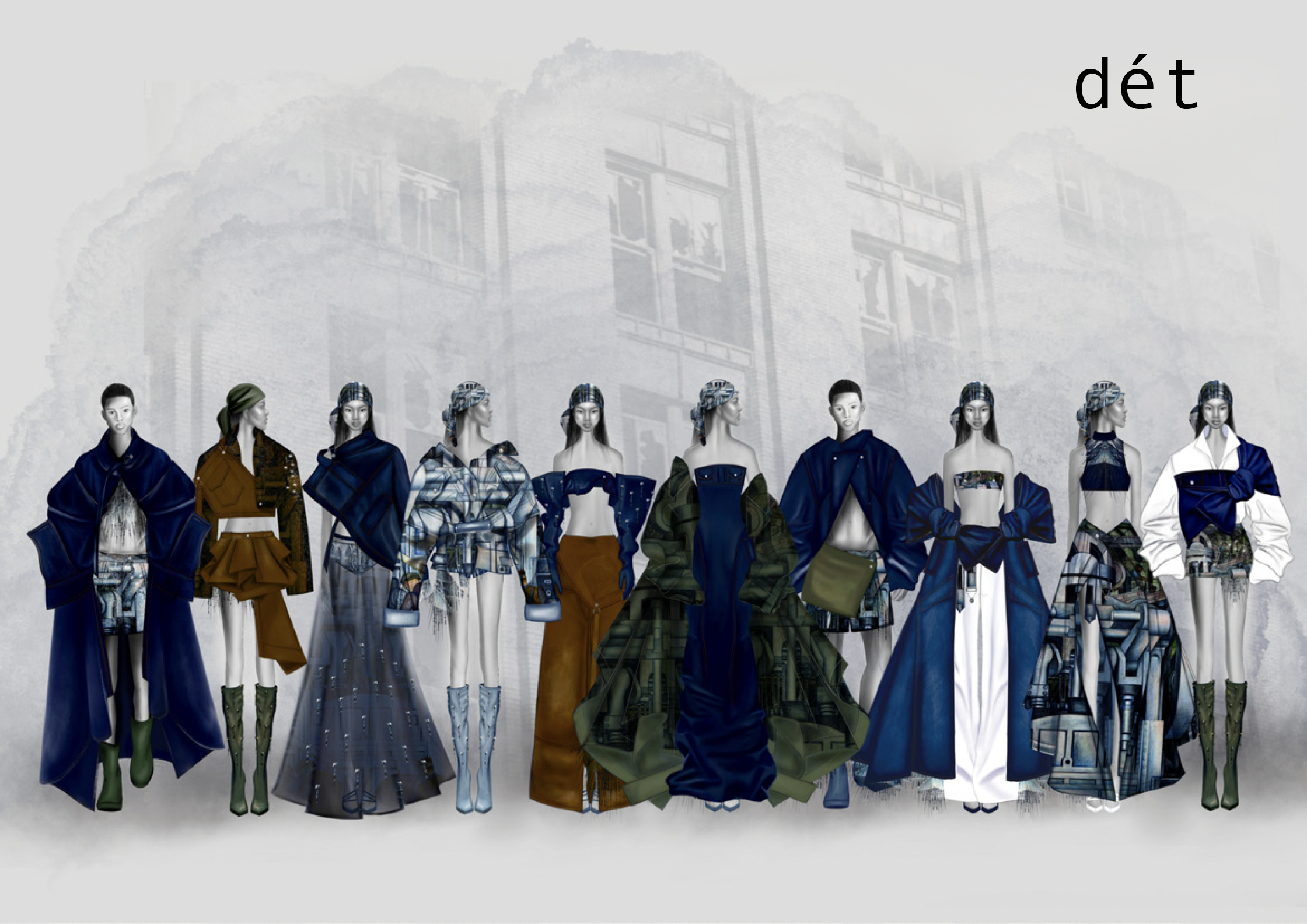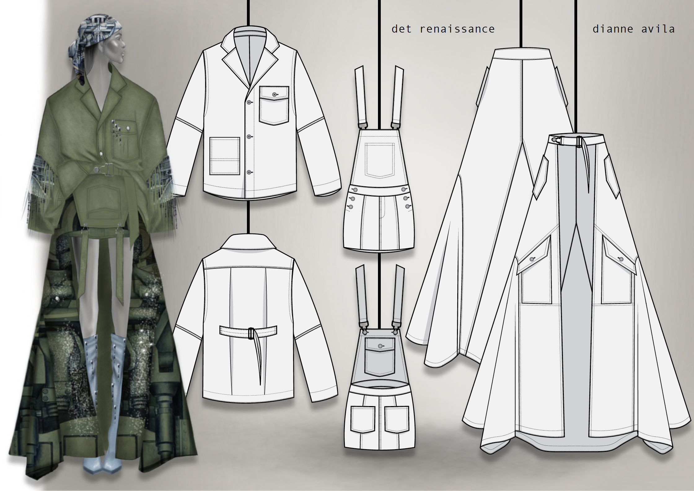 This collection draws inspiration from Detroit’s cultural and industrial heritage, blending the energy of Motor City, the soulful rhythm of Motown, and Diego Rivera’s “Detroit Industry” murals. The Silhouettes pay homage to the working class through the use of denim and other workwear materials, reflecting the resilience and strength of the city’s labor force. Bold colors, intricate embellishments, and glamorous details nod to the vibrancy of Motown music and the iconic style of The Supremes, merging art, music, and industry into a powerful narrative of creativity and perseverance.
